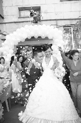 А теперь всё проходит по заранее написанному сценарию: в загс на дорогих лимузинах, затем — ресторан с заморскими выпивками и снедью. Из-за обильного застолья иной раз не хватает времени и физических сил на простое человеческое лихое веселье. Чтоб, как в песне, «свадьба пела и плясала»... ВОЗРОЖДАЮТСЯ ДОБРЫЕ ТРАДИЦИИ В прошедшие выходные дни в нашем дворовом кубике отмечалось это радостное событие — свадьба. И мне захотелось об этом написать, так как я давно не бывала на подобных свадьбах. Но всё по-порядку... Айжан Сыдыкова — высокая, стройная красавица в подвенечном наряде, словно принцесса. Очень волнуется, как все невесты. Мама в последний раз критически осматривает наряд и прическу дочери. И, конечно, удовлетворенно любуется — дочь хороша. И, как говорится, не только красавица, но и умница. Она окончила Славянский университет, владеет турецким, французским и английским языками, работает в агентстве по туризму. Мама невесты рассказывает, что молодые встречались 1,5 года, пока решились на серьезный шаг. «Жених у нас тоже — парень хоть куда. Равшан — серьезный, работает в МИДе, а главное — любит нашу Айжанку»,— не без гордости добавляет она. Пока на женской половине дома родственники хлопотали возле невесты, во дворе у подъезда суетились подружки невесты и соседки – накрывали празд¬ничный стол. Двери подъезда украшены гирляндой серебристо-белых шаров. На столе — шампанское и множество изысканных закусок, как в лучшем ресторане. Чувствовалось, что родители молодых старались от души, чтобы праздник запомнился не только молодоженам, но и соседи приобщились к этому радостному событию и могли полюбоваться на молодых. Приятно и то, что свадьбы теперь празднуются в цивилизованных традициях. Всё реже случаются такие браки, когда крадут невест. Старые невежественные обычаи уходят в прошлое… К торжественному моменту всё готово. Родители невесты с тревогой поглядывают на часы: что-то жених запаздывает. Но вот, громко сигналя, во двор въезжает целый эскорт свадебных машин. Впереди — огромный белый лимузин, украшенный лентами и шарами. Ну, очень впечатляющее зрелище! Из машин к подъезду подходят друзья жениха — все бравые ребята, как на подбор. Ну, а жених не торопится выходить из лимузина. Так задумано, для большей интриги. Но, конечно, вскоре все сумели полюбоваться и на жениха. Парень — настоящий мужчина, всем хорош. Хочется верить, что девушка не ошиблась в выборе. Друзья жениха под окнами Айжаны громко кричат: «Выходи, Айжана, хватит прятаться!». Но девушка так просто не хочет сдаваться. Тогда они стали умолять: «Выходи, мы тебя любим!». Она — непреклонна, пока сам жених не крикнул: «Айжана, я тебя люблю». Тогда только ему разрешили подняться к невесте. Вскоре жених вынес на руках невесту к своему лимузину. Все гости и соседи увидели счастливых молодоженов, которые отправились во дворец бракосочетания. А соседи подняли бокалы с шампанским за счастье молодых. Праздник во дворе продолжается: каждый из присутствующих от души пожелал им добра на жизненном пути. А сама свадьба прошла на славу, говорят очевидцы. Было мирно, весело и даже без драки. Нынешняя осень очень урожайная и старики говорят, что это добрая примета – свадеб будет много. И дай Бог, чтобы свадьбы были красивыми и веселыми, а молодожены счастливыми! Теперь расскажем немного о 
